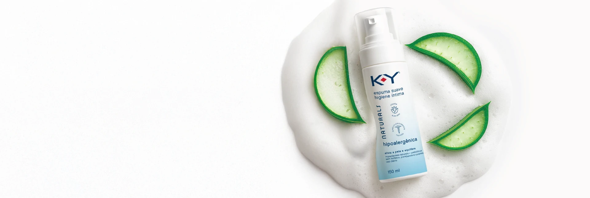 KY® NATURALS espuma suave de higiene íntima suave hipoalergênica para pele delicada promove higiene e mantém a hidratação natural. Possui Aloe Vera, que oferece bem-estar e acalma.
