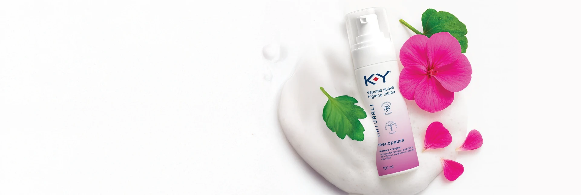 KY® NATURALS espuma suave de higiene íntima menopausa promove higiene e mantém a hidratação natural. Possui óleo essencial de gerânio, que oferece bem-estar, e proteína da alcachofra, que melhora a sensação de ressecamento.