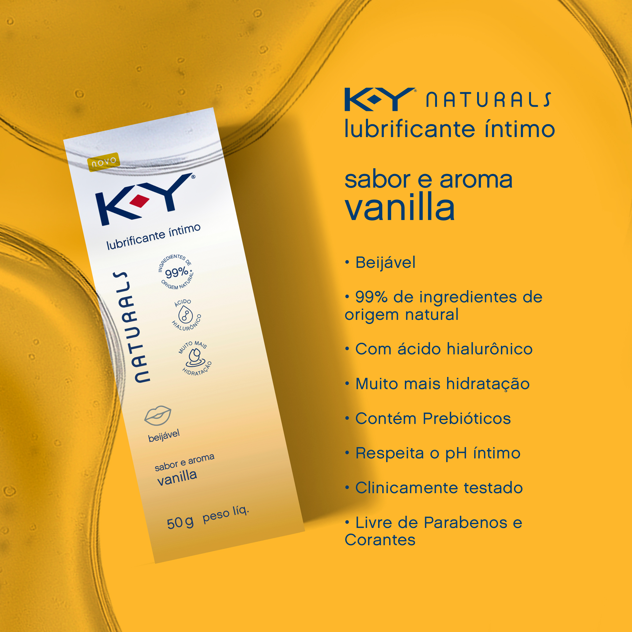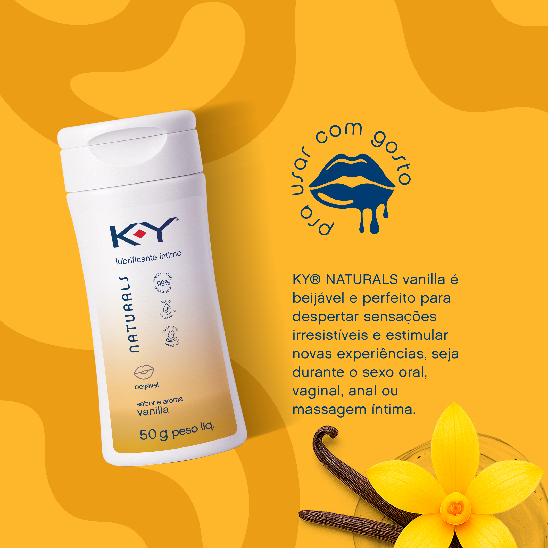 KY® NATURALS vanilla é o lubrificante íntimo beijável perfeito para despertar sensações irresistíveis e estimular novas experiências, seja durante o sexo oral, vaginal, anal ou massagem íntima, já que oferece alta espalhabilidade e duração da lubrificação com muito mais hidratação.